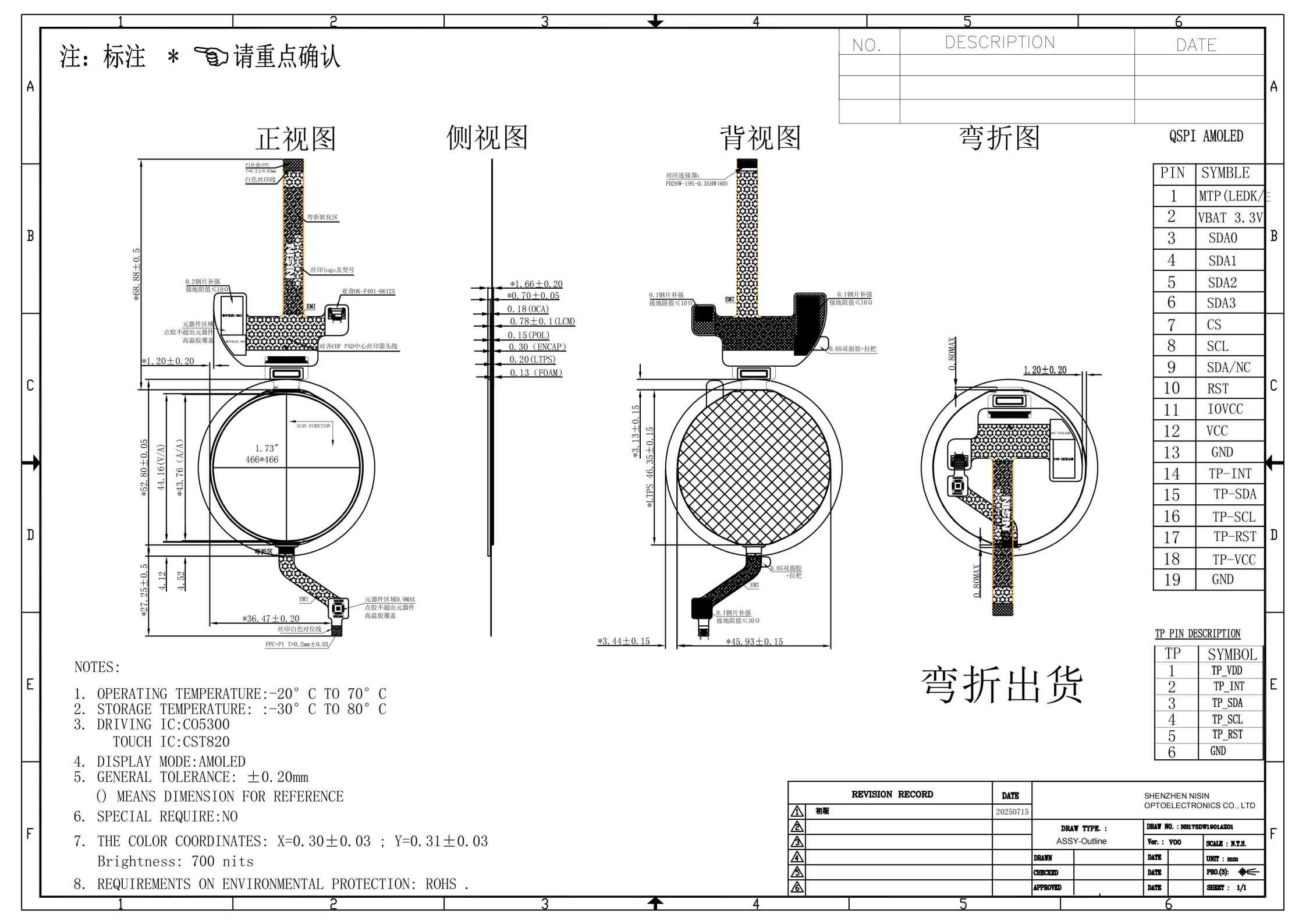 This 1.73-inch high-performance AMOLED display module boasts a 466×466 resolution and 16.7 Millionen Farben, delivering vivid and lifelike visuals. It features an ultra-high contrast ratio of 100,000:1, a fast response time of 3ms, and a minimum brightness of 350cd/m², and is equipped with an IPS wide-viewing-angle panel to ensure clear visibility from all angles.