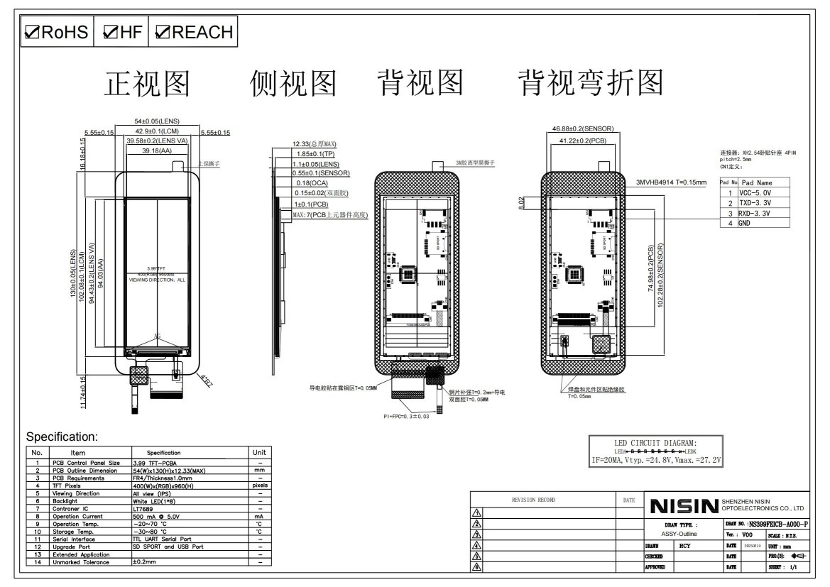 Extra-Long Aspect Ratio Design: The 3.99-inch (400× 960) strip screen, with a display area of 39.18×94.03mm, is perfectly suited for installation in narrow spaces.