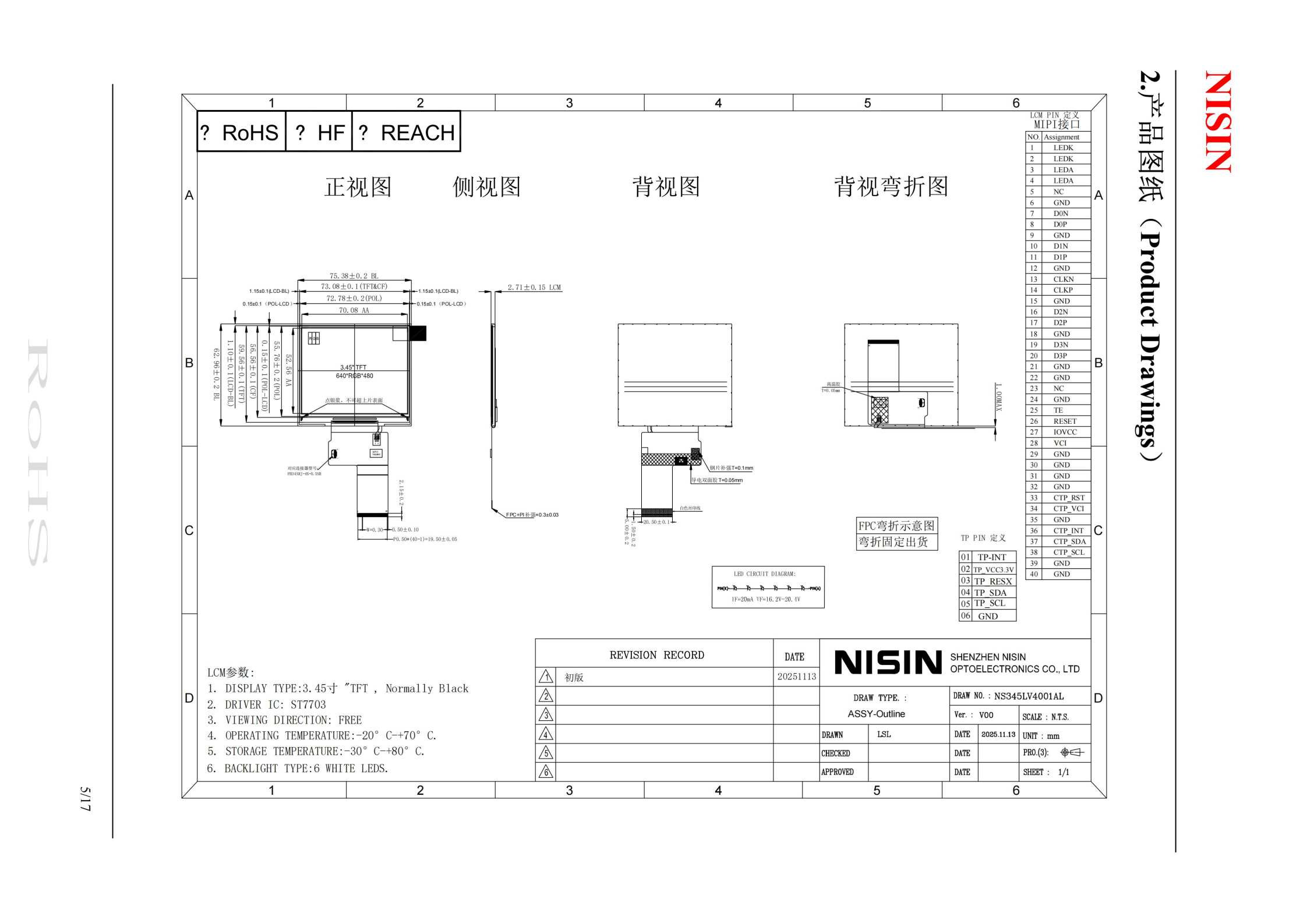 The 3.45-inch size is compact yet large enough to display important information effectively. The display area measures 70.0852.56mm, providing a sufficient canvas for your content. The LCM (Liquid Crystal Module) has overall dimensions of 75.3862.96*2.71mm, making it easy to integrate into various devices. Its slim profile of 2.71mm also helps save space in your product design.
