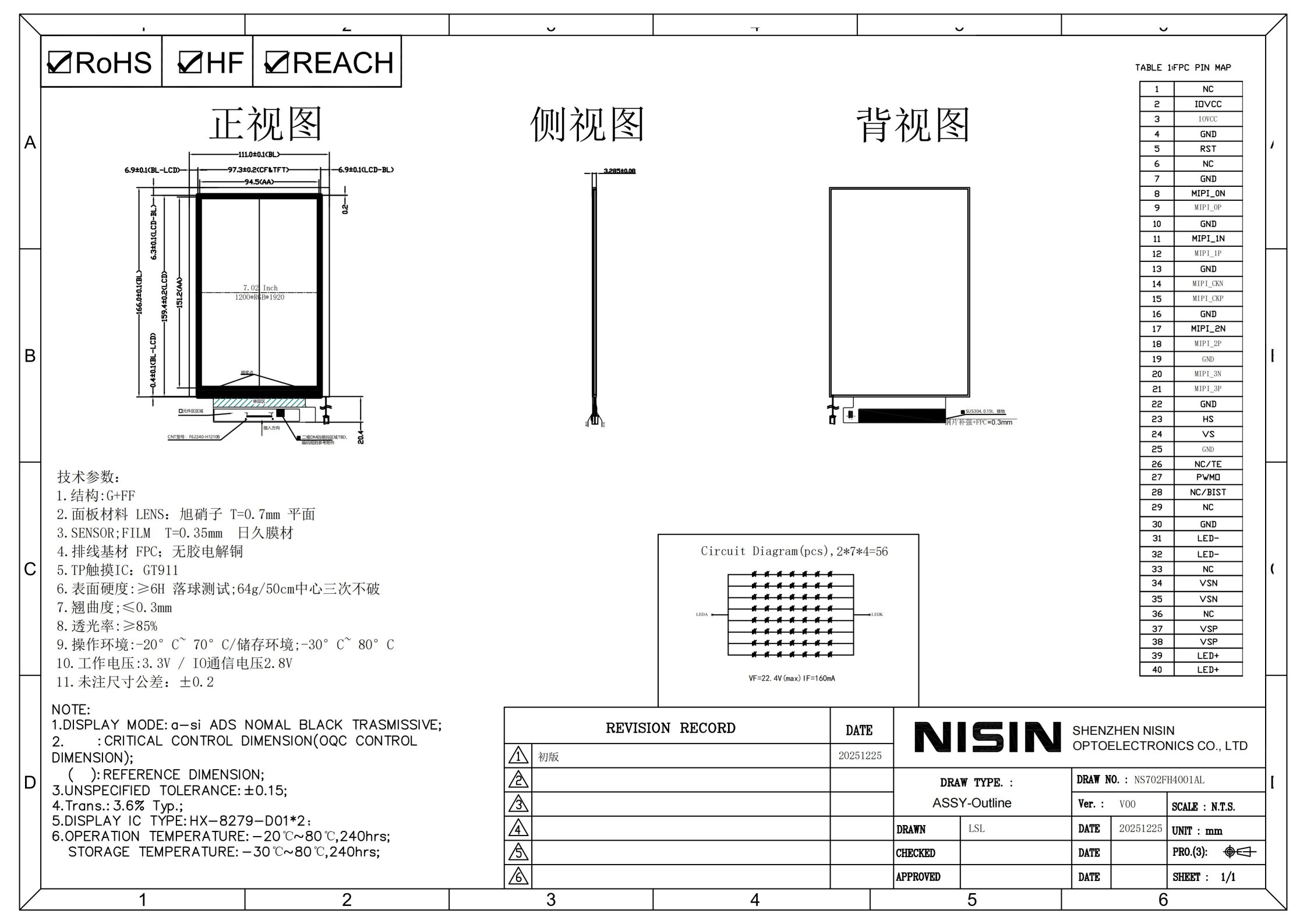 This 7.02-inch IPS LCD display module is designed specifically for professional equipment operating in harsh environments. It utilizes a 1200×1920 high-resolution IPS hard screen with a 1000-nit high-brightness backlight, ensuring clear visibility even in bright sunlight. Its wide operating temperature design (-20℃~+70℃) adapts to extreme temperature environments, and the MIPI interface ensures stable signal transmission.
